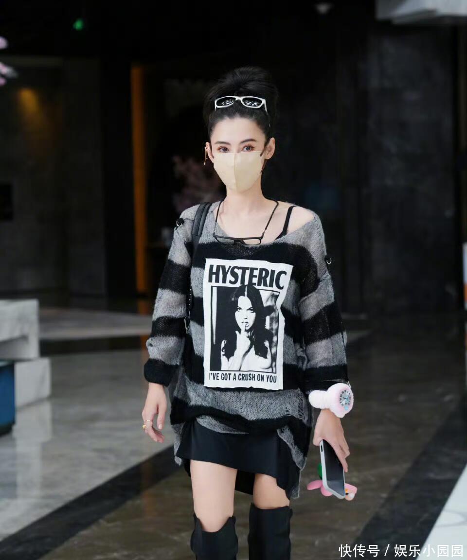 穿基础款,学会玩转“下衣失踪”很重要,Oversize版型的条纹罩衫,搭配上黑色短裙,配双长靴,露出大腿照样显高。相比之下,张柏芝的彩色系穿搭真的很亮眼,果然骨相的好的人,在穿搭这一块可以横着走。文字原创,图片来自网络,如有侵权请联系删除。