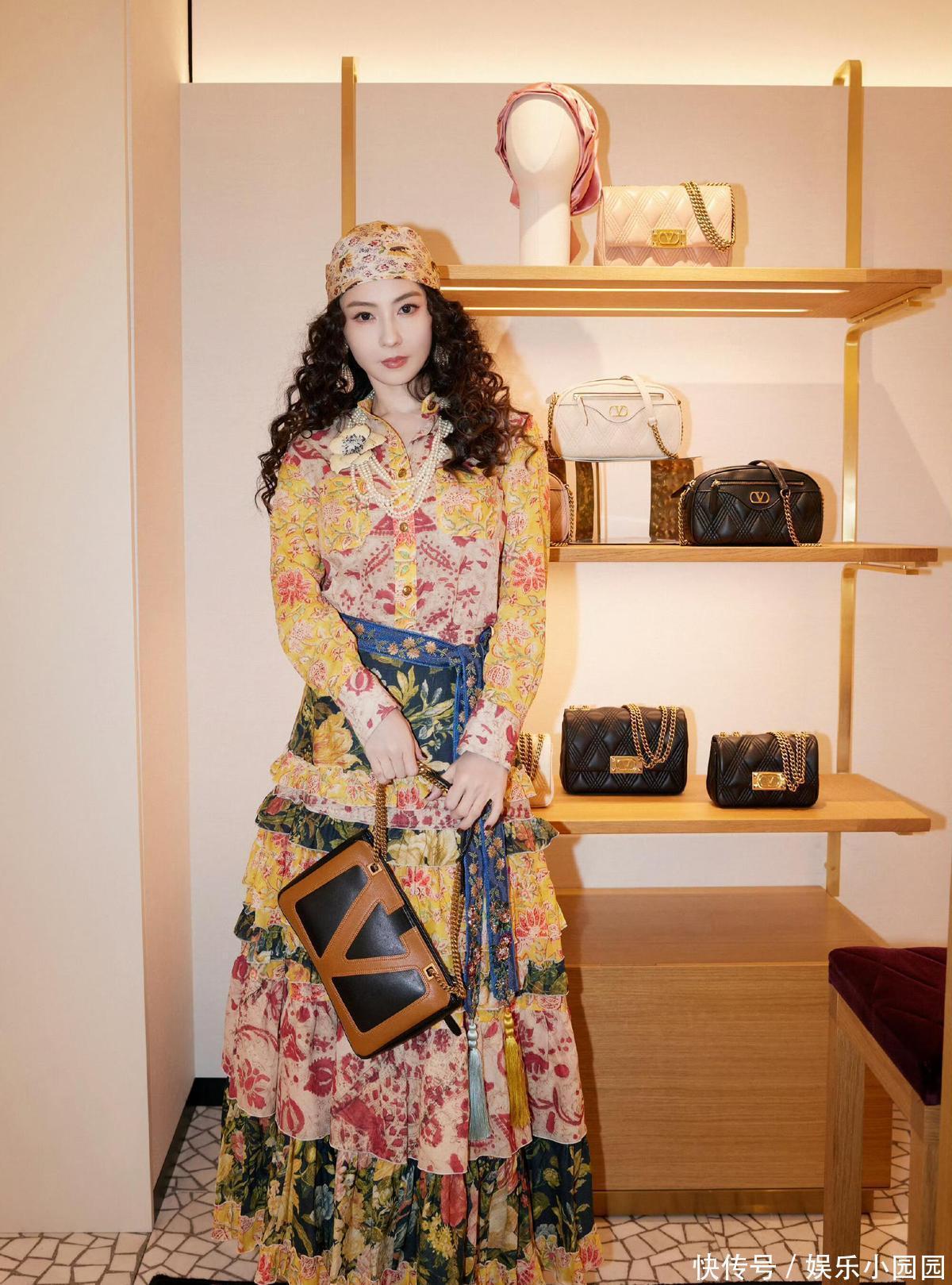 “花衣服”也能被张柏芝穿出高级感,甚至还诠释出了“极繁主义”的效果,花衬衫配印花蛋糕裙,戴条头巾尽显贵气范儿。
