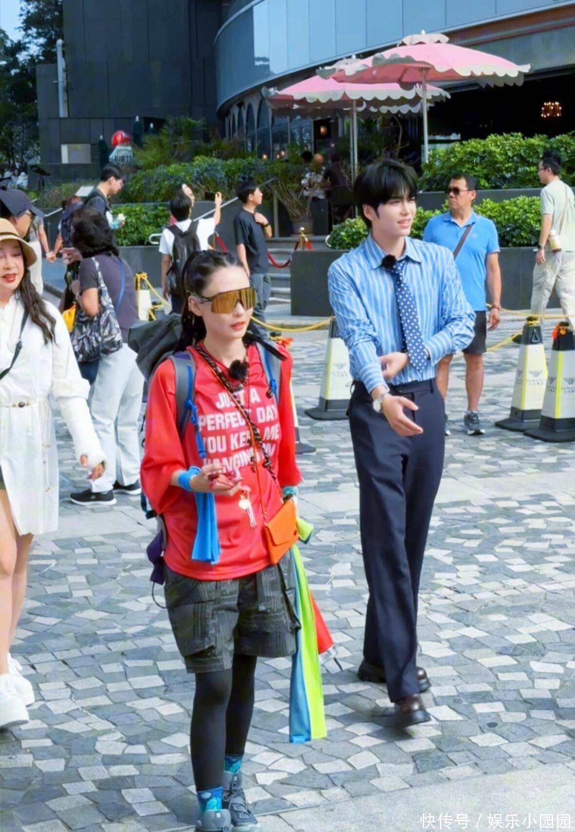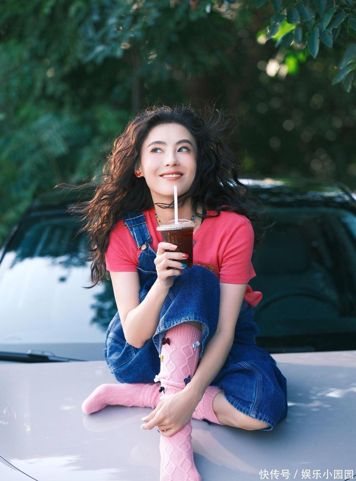 谁说女人到了中年,就不能大胆穿彩色了?张柏芝的彩色系穿搭,简直太有少女感了,玫红色T恤配牛仔背带裤,粉色袜子上还有蝴蝶结。